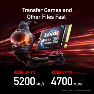 - Быстрая передача файлов. Lexar PLAY 2230 PCIe 4.0 использует высокоскоростной интерфейс PCIe Gen 4×4, обеспечивая скорость передачи данных до 5200 МБ/с и скорость записи 4700 МБ/с, поэтому Вы можете быстро переносить даже большие игровые файлы.