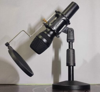 Помимо микрофона и кабелей, в комплектации идет подставка и поп-фильтр для уменьшения низкочастотного шума и щелчков. Обычно с микрофонами идет громоздкая подставка, которая занимает много места на рабочей поверхности. Но Maono AU-HD300Т имеет компактную металлическую подставку с металлической трубкой, высота которой регулируется, что обеспечивает устойчивость конструкции и долговечность.