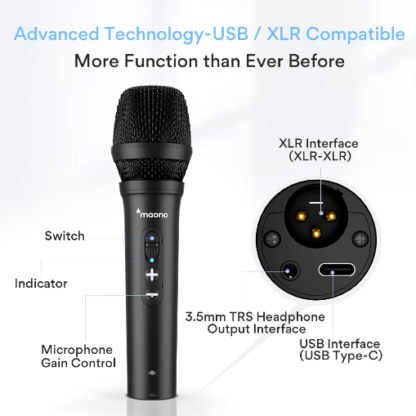 Maono AU-HD300Т – профессиональный портативный динамический микрофон с двухрежимным выходом USB / XLR. Цифровой выход USB подключается к компьютеру, ПК, Mac, а аналоговый выход XLR подключается к микшеру, аудиоинтерфейсу или портативной акустической системе. Идеально подходит для подкастинга, записи, прямой трансляции, вокала, закадрового голоса, пения, домашней студии, создания контента.