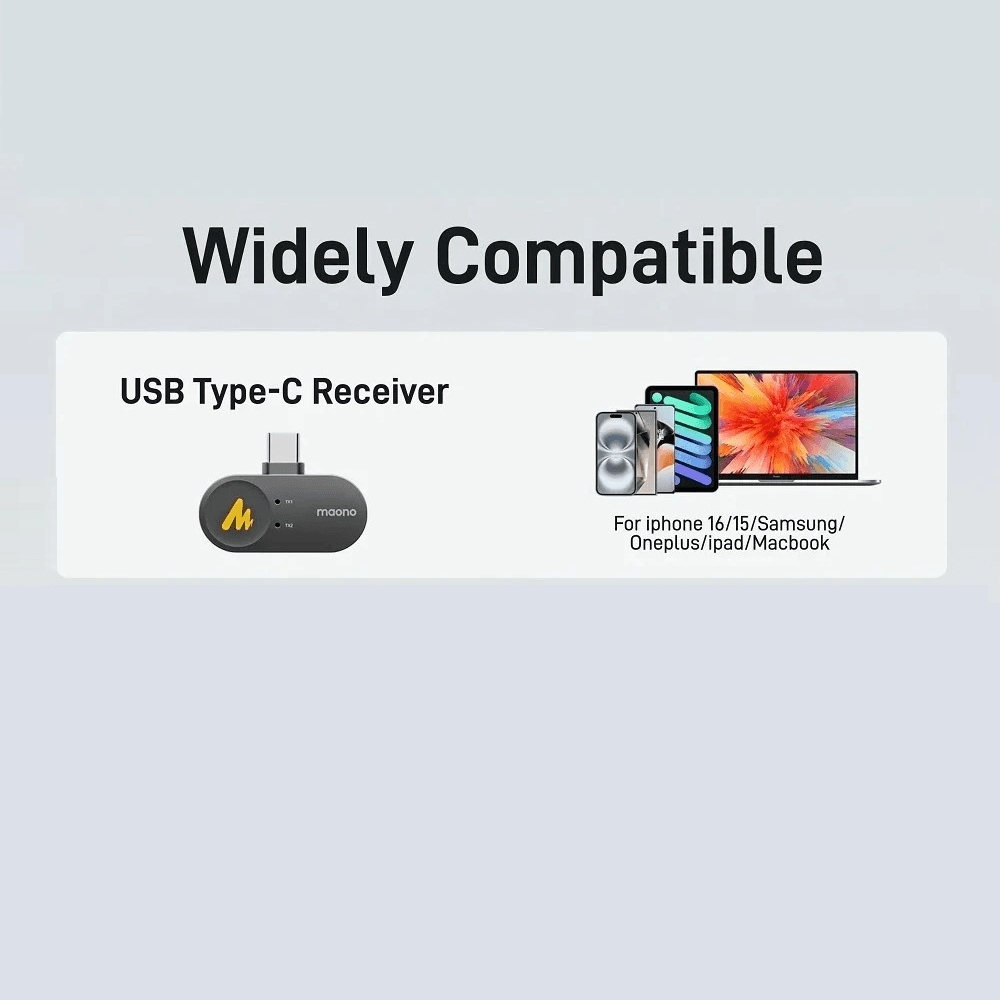 Type-С версия микрофона Maono Wave T5 совместима с iPhone 15,16,17, будущими версиями смартфона от Apple и Android устройствами.