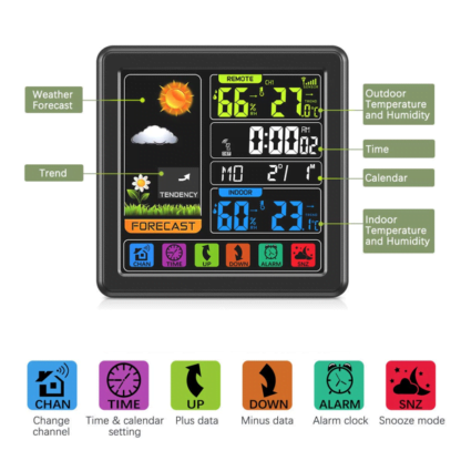 Метеостанция для дома с выносным беспроводным датчиком – это удобное и компактное устройство, позволяющее узнавать наиболее точные погодные условия и прогноз в режиме реального времени. Вы можете расположить датчик на улице, в защищенном от попадания воды месте, а метеостанцию – внутри дома. Эффективное расстояние передачи сигнала – до 60 метров. Большой цветной дисплей отображает показания прибора максимально удобно и понятно. Вы получаете актуальный прогноз погоды с указанием температуры, влажности и 4 видов погоды: солнечно / переменная облачность / облачно / дождливо.