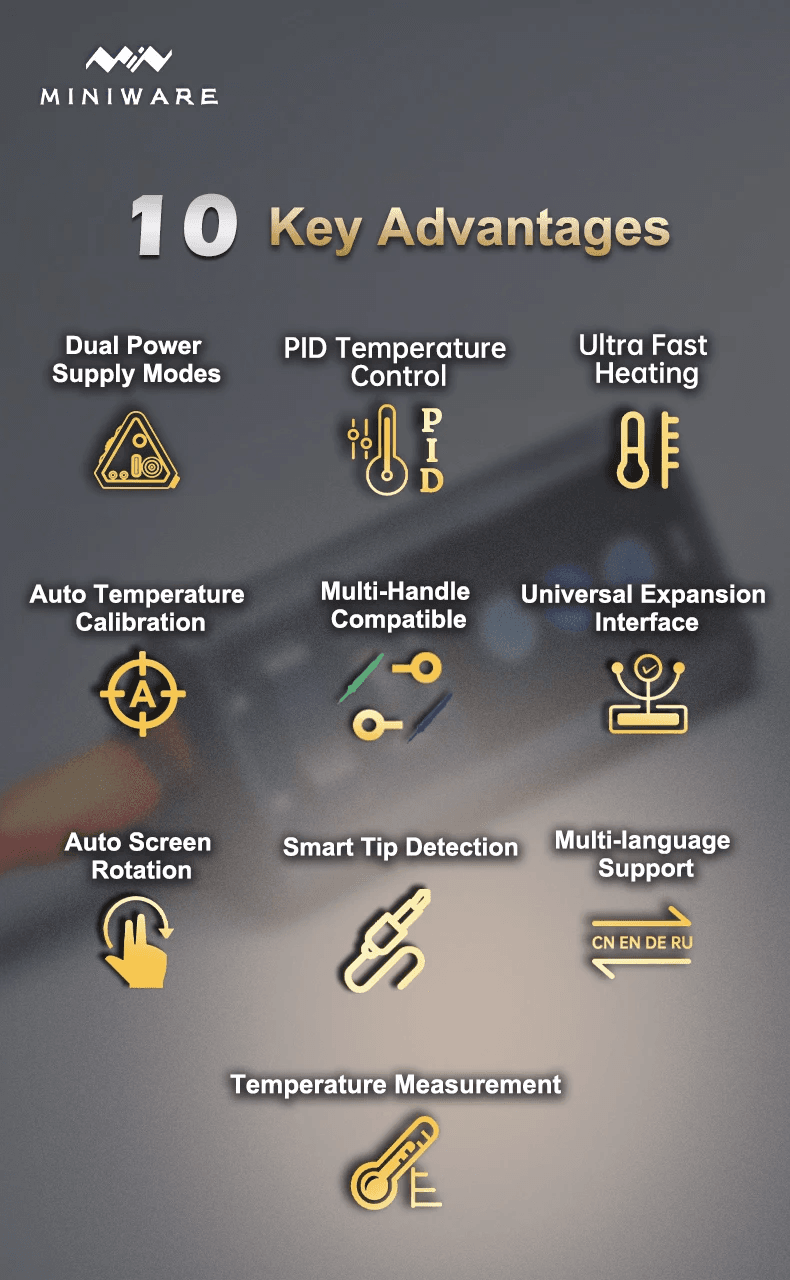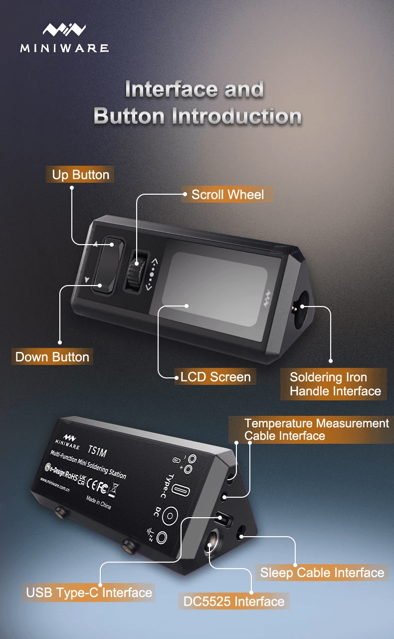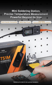 - Многофункциональная мини-паяльная станция TS1M выполнена в нетрадиционном дизайне с треугольной конструкцией корпуса. Углы обработаны шлифовкой, сохраняется геометрическая линия, обеспечивая удобный хват.