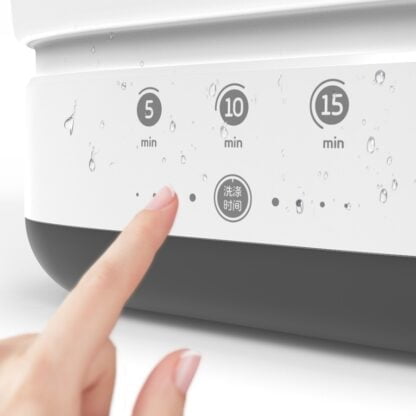 Портативная стиральная машинка Moyu имеет стандартную программу для стирки вещей при температуре воды 60 градусов. Просто прикоснувшись к кнопке переключателя, вы можете выбрать время стирки 5, 10, 15 минут, в зависимости от вида и материала одежды. Горячая вода заливается внутрь вручную, там же смешивается со стиральным порошком, отдельных отсеков под средство для стирки нет. Максимальный объем вещей для стирки составляет 0,8 кг.