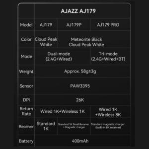 - Комплектация: мышь Ajazz AJ179 , ресивер 2.4 Гц, кабель Type C, инструкция на английском
