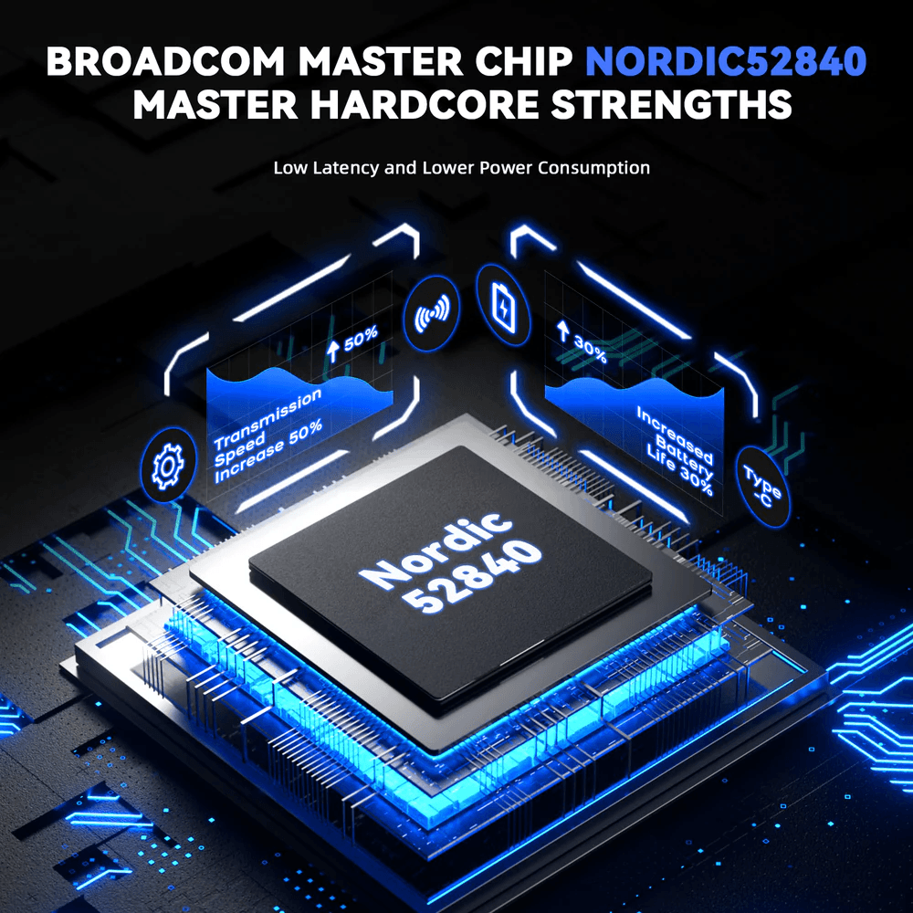 - Broadcom BK52820 Triple Mode. Беспроводная игровая мышь оснащена высокопроизводительным микроконтроллером Broadcom BK52820. Трехрежимная связь (2,4 ГГц беспроводная/USB-C проводная/Bluetooth). Режим 2,4 ГГц без задержек для молниеносной производительности, Bluetooth для беспроблемного сопряжения с большинством устройств. Не прерывайте игру во время зарядки с помощью сверхгибкого кабеля.