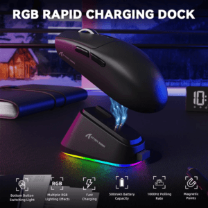 - Улучшенная магнитная зарядная док-станция. Оснащена технологией Magnetic Lock Tech для мгновенной зарядки. Просто положите мышь G3PRO на док-станцию – она зафиксируется и начнет заряжаться. Док-станция также оснащена сенсорным переключателем RGB подсветки – коснитесь его, чтобы переключаться между различными световыми эффектами.