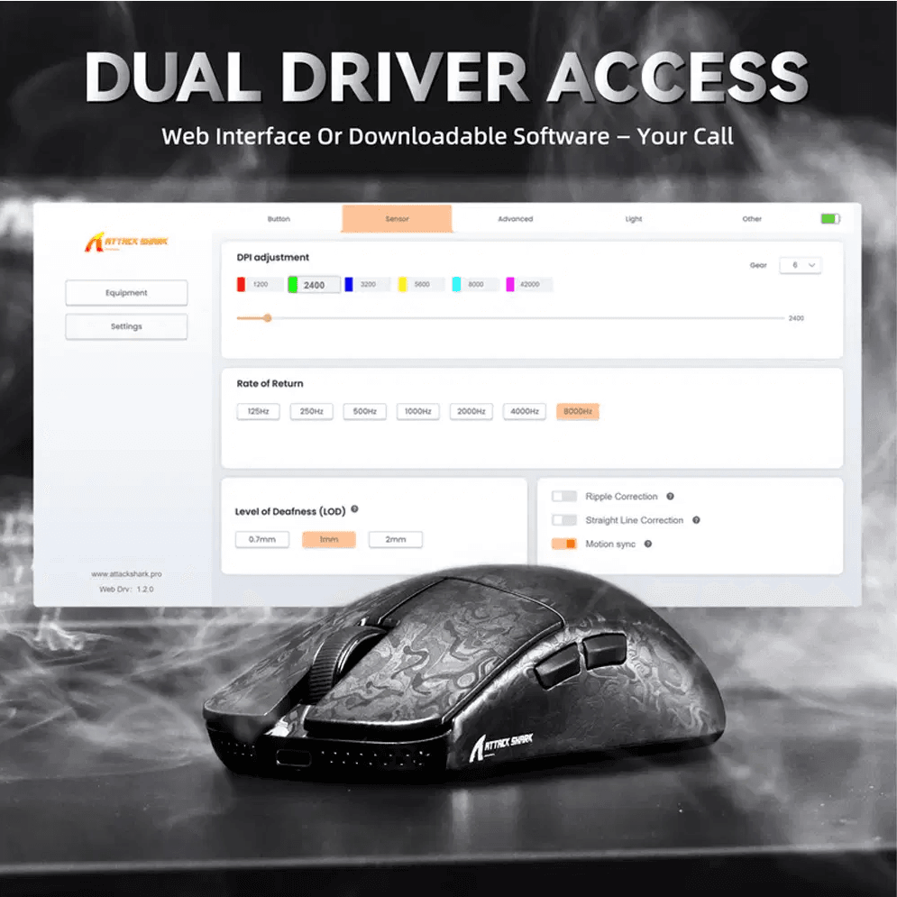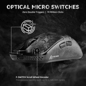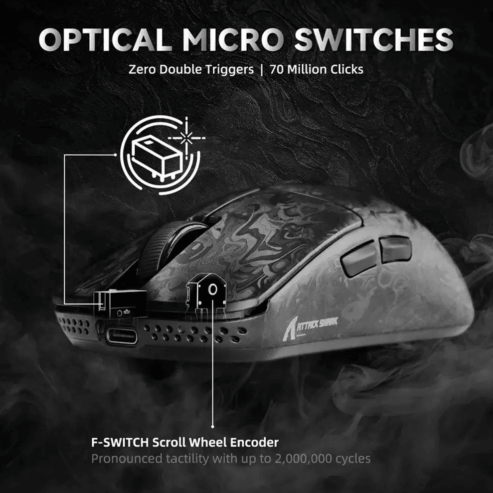 Attack Shark R11 Ultra – флагманская беспроводная мышь, разработанная для самых требовательных игроков, которые ценят скорость, точность и легкость. Полностью литая конструкция из углеродного волокна обеспечивает исключительную прочность, износостойкость и ударопрочность. Вес всего 49 г обеспечивает легкое управление и быстрые, точные движения. Высококачественный энкодер F-Switch гарантирует точность и качественную обратную связь, что идеально подходит для FPS, MOBA, MMO и Battle Royale.