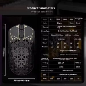 - Композит из углеродного волокна: Эта мышь, изготовленная из композитного углеродного волокна (карбона), отличается непревзойденной прочностью и превосходным качеством.