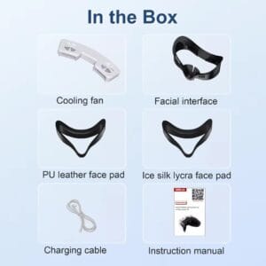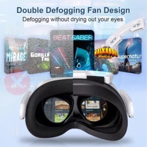 - Накладка оснащена 2 малошумными вентиляторами охлаждения, отлично рассеивает тепло, поэтому вы можете наслаждаться VR с комфортом даже жарким летом.