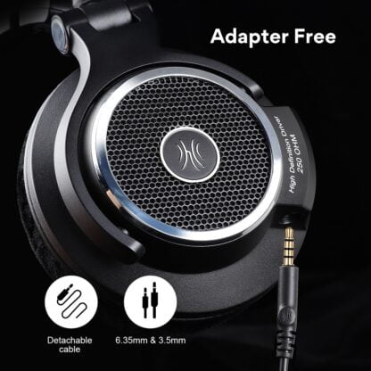 Кабель Oneodio Monitor 80 съемный, что очень удобно при транспортировке. Наушники оснащены двумя разъемами (3,5 мм и 6,35 мм), что позволяет подключаться к большинству устройств. Комплектация наушников включает кейс, который защитит их от повреждений во время транспортировки.