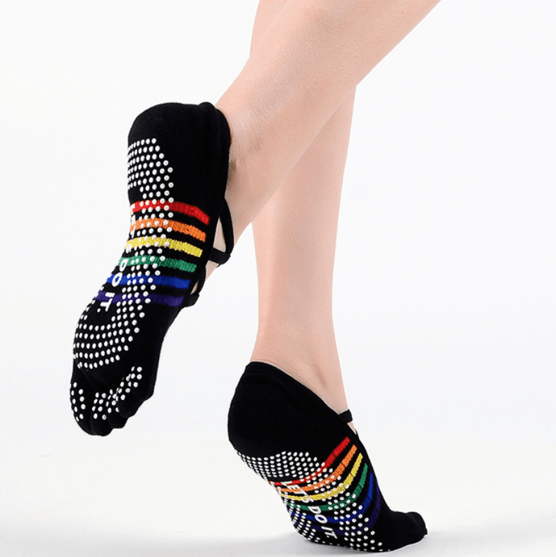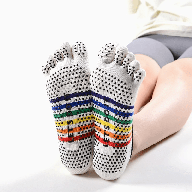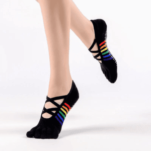 Стильные носки Meikan с отдельными пальцами созданы специально для йоги, пилатеса, баре и домашних тренировок. Модель с низкой посадкой и перекрестными резинками на подъеме надежно фиксируется на ноге, а яркие радужные полоски добавляют настроения каждому занятию. В наборе – одна белая и одна черная пара. Носки Meikan обладают рядом преимуществ, которые делают их идеальным выбором для занятий и тренировок: