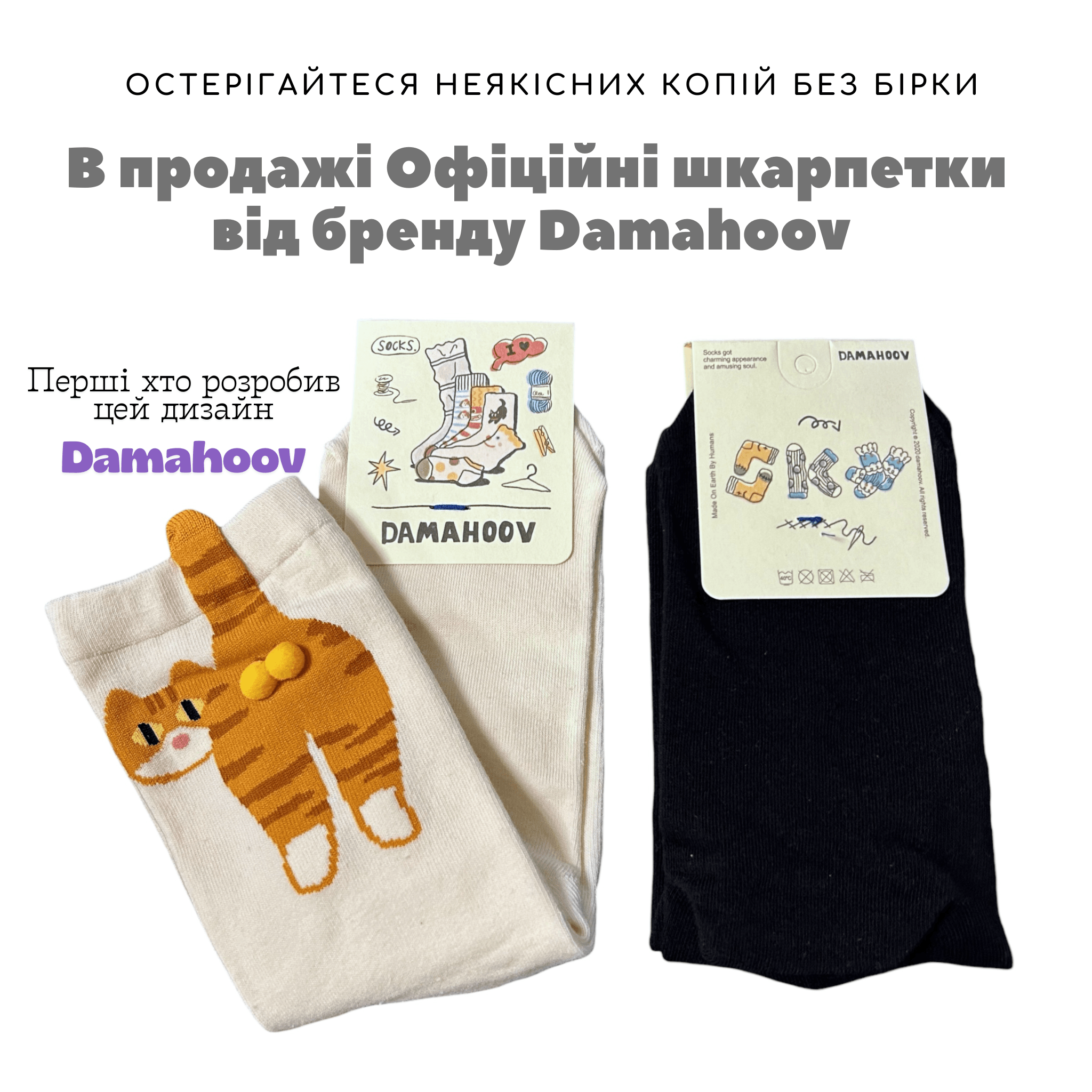 Носки от бренда DAMAHOOV первими разработали данный дизайн носков с котиками, остерегайтесь некачественных копий без бренда!