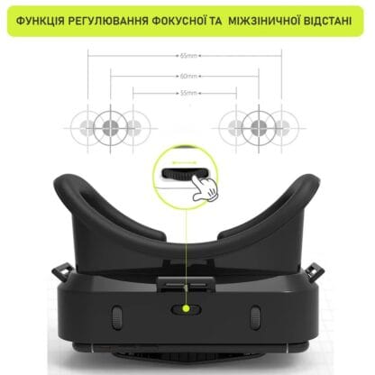 - Регулировка линз в двух плоскостях – фокусное расстояние (позволяет настроить по диоптриям до 6) и расстояние между глазами (от 58мм до 72мм)