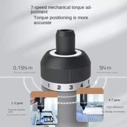 - 7 скоростей крутящего момента, регулировка одной кнопкой