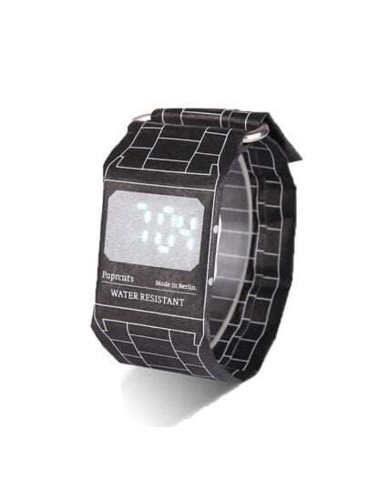 Встречайте новинку! Представляем тренд нынешнего сезона – бумажные часы«Paprcuts watch». Впервые увидев бумажные часы, можно подумать, что перед вами контрольный браслет. Такие вещи обычно выдают членам спортивного клуба. Разница лишь в том, что новое изобретение несколько шире по размеру и имеет замысловатую расцветку. При детальном рассмотрении видно, что корпус часов оснащен экраном, где высвечивается время. Действие происходит путем простого нажатия кнопки.