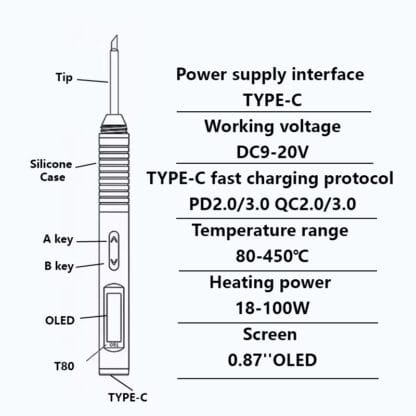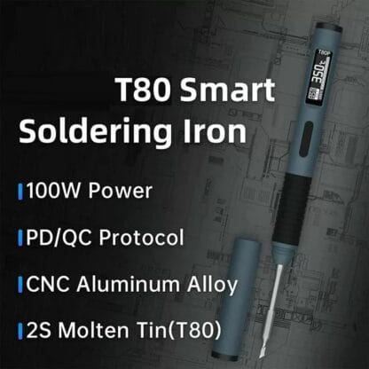 Паяльник T80 – это новая модель паяльника от компании ALIENTEK с максимальной мощностью 100 Вт и регулировкой температуры от 80 до 450°C. Конструкция ручки паяльника цельнолитая, изготовлена из высококачественного алюминиевого сплава, выполнена с учетом требований эргономики. Обеспечивает удобство в работе в течение длительного времени.