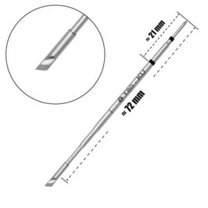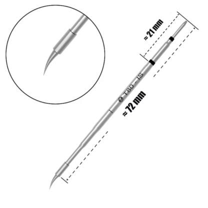 Для паяльника T80 используются жала типа T80-XX, совместимые с JBC C245 с внутренним сопротивлением 2,5 Ом, длина жала около 72 мм. Эти жала позволяют достигать максимальной мощности нагрева 100 Вт в течение 5 секунд.