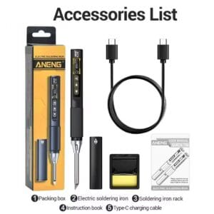 - Комплектация: паяльник ANENG SL108, жало Т12-К, подставка под паяльник, кабель USB type-C, инструкция на английском