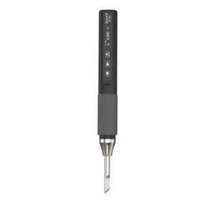 - Продуманная конструкция. Корпус устройства выполнен из алюминиевого сплава, пластиковые элементы из ABS и силиконовая накладка на ручке обеспечивают комфортное удержание и предотвращают скольжение при работе. Спереди находится сменное паяльное жало T65, которое можно быстро заменить при необходимости.