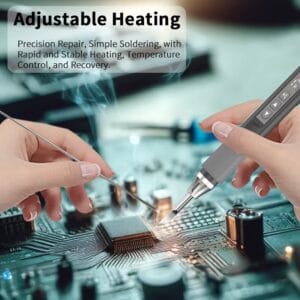 - Рабочее напряжение варьируется от 5 до 20 В. Максимальная мощность паяльника – 75 Вт, что обеспечивает быстрый нагрев и эффективную работу даже с относительно крупными компонентами. Температура достигает 420°C, а олово плавится всего за три секунды, что особенно удобно при необходимости быстрой пайки.