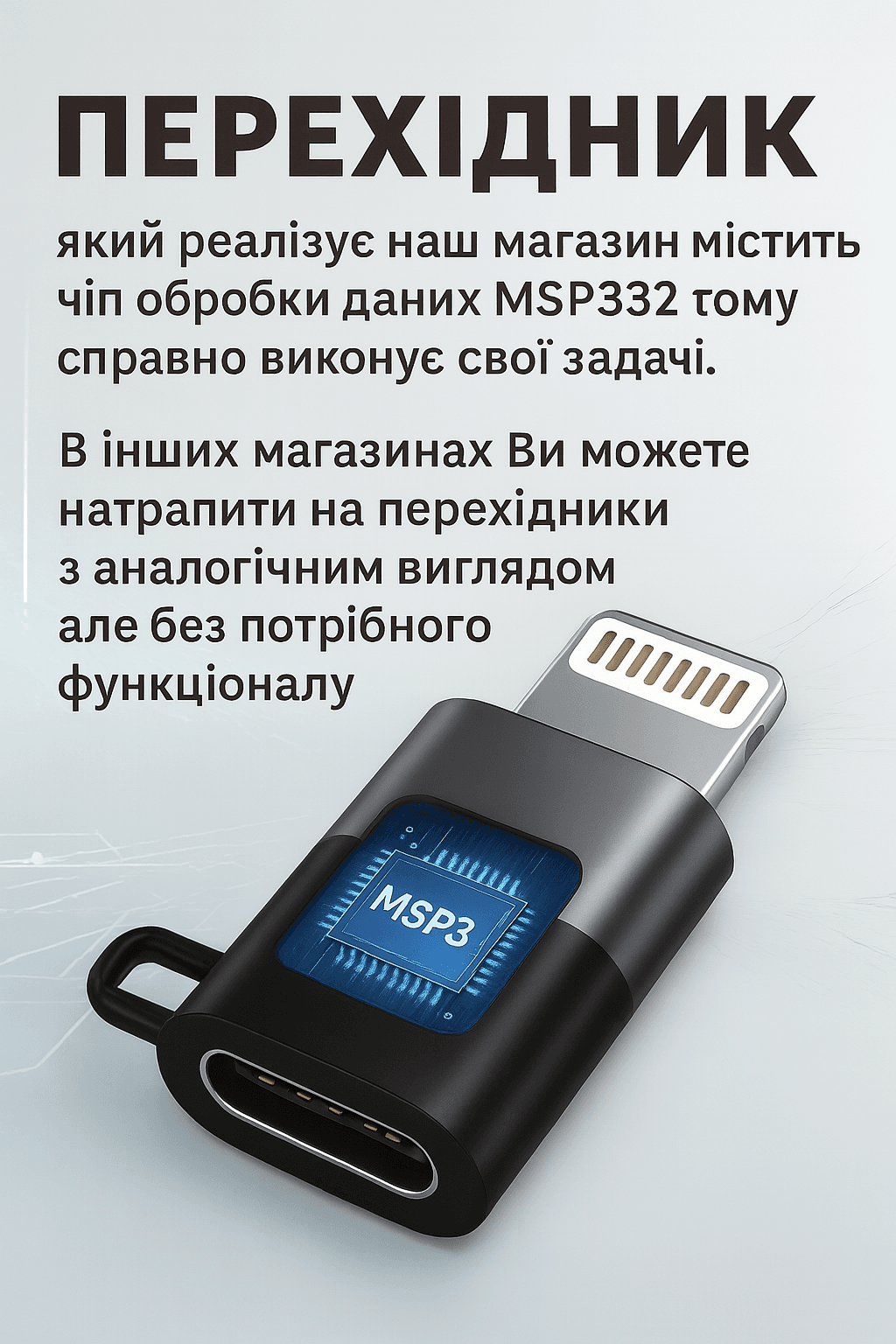 Данный переходник работает с беспроводными петличными микрофонами, наушниками, в отличие от большинства аналогичных адаптеров! Также можно использовать для передачи файлов и зарядки