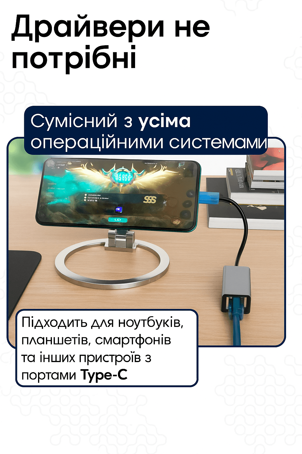 Совместимость с большинством современных устройств с Type-C портом делает сетевой адаптер Type-C-LAN универсальным решением для всех ваших нужд в подключении к сети. Просто подключите его к своему устройству и начните наслаждаться невероятной скоростью и удобством использования без установки дополнительного программного обеспечения.