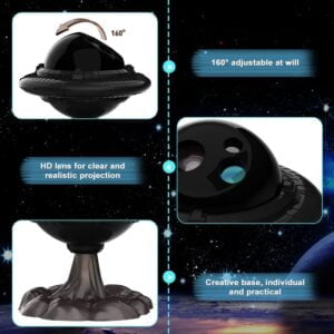 Пульт дистанционного управления можно использовать для регулировки изображения и его яркости, чтобы настроить проекцию так, как вам нравится, и менять картинки проекции. Также можно регулировать скорость вращения, создавая впечатление спокойной звездной ночи, или же безудержного полета НЛО сквозь космос. Угол проекции регулируется вручную. Изображения звезд и туманностей можно включать вместе или по отдельности. Кроме того, в проекторе звездного неба можно включить таймер на 45 или 90 минут, и ночник не будет работать всю ночь, а выключится автоматически. Удобное питание от USB.