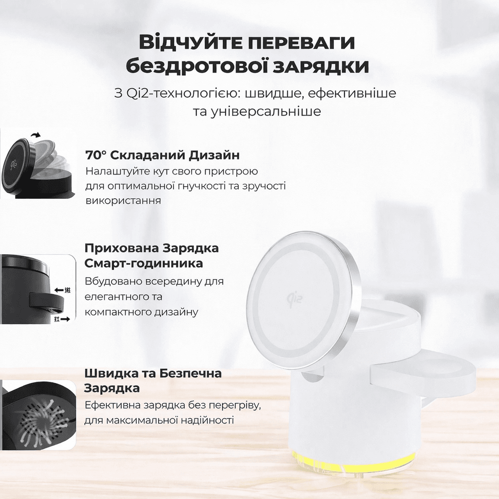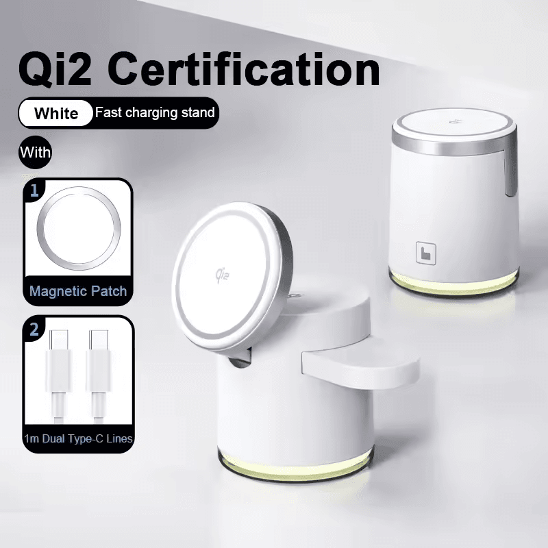 Ощутите удобство аккуратной и компактной зарядной станции, которая улучшает вашу повседневную рутину. Будь то дома, в офисе или в пути, новое беспроводное зарядное устройство Qi2 с магнитной зарядкой Magsafe – это идеальное решение для зарядки гаджетов.