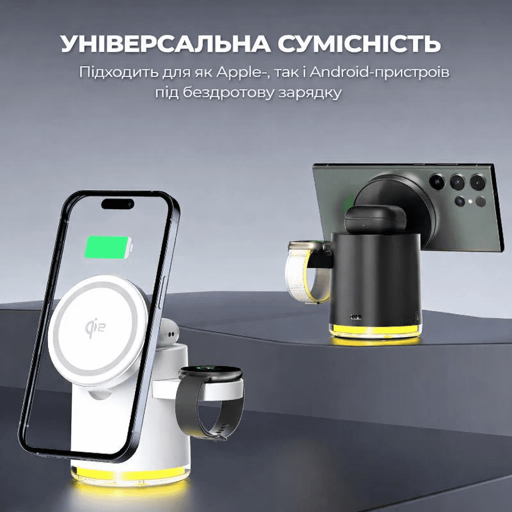 - Заряжайте все ваши устройства одновременно: смартфон, часы и наушники.
