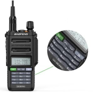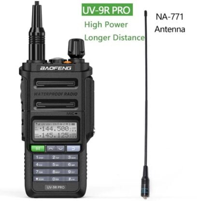 Рация Baofeng UV-9R Pro – современное устройство с дальностью приема до 10 км, влагозащитой ІР 67 от брызг и пыли, сделано из высокопрочного пластика, устойчивого к ударам и повреждениям. Радиокомпоненты фиксируются на алюминиевом шасси, что увеличивает надежность этого устройства. Несмотря на внешнюю громоздкость, рация очень эргономичная и комфортная в пользовании. В её дизайне каждая деталь находится на своём месте, поэтому удобство в процессе эксплуатации обеспечивается на 100 %.