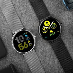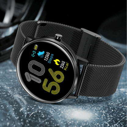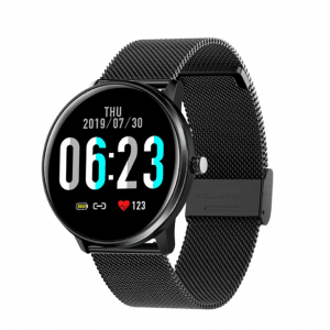 Корпус часов изготовлен в круглом виде, но сам экран имеет квадратную форму и три разных циферблата. Яркость экрана можно настроить в меню, на максимальной яркости текст можно прочитать даже при «слепящем» солнечном свете. Снизу корпуса размещен датчик пульса, и контакты для зарядки. Съемный ремешок изготовлен из металла в стиле миланского плетения, и может регулироваться на обхват руки от 16 до 21 см.