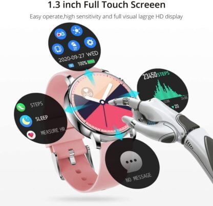 Умные часы V23 Pro сделают вашу жизнь проще на многих уровнях. Они позволит эффективно заботиться о своем здоровье, отслеживая температуру, частоту сердечных сокращений или качество сна. Благодаря нескольким спортивным режимам вы сможете оптимально спланировать тренировку, а специальные уведомления позаботятся о том, чтобы вы не пропустили ни одной новости. Устройство работает до 7 дней без подзарядки и предлагает ряд дополнительных функций, таких как напоминания, прогноз погоды или воспроизведение музыки.