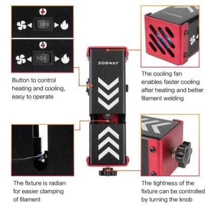 Сварочный инструмент для филамента, уникальный инструмент для соединения обрезков филамента или для восстановления разрывов в филаменте. С его помощью можно эффективно использовать остатки пластика, создавая непрерывную нить 1.75мм, подходящую для дальнейшего использования в 3D-принтере.