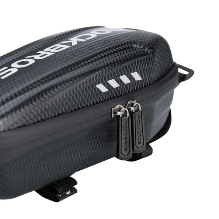 Сумка RockBros B62 выполнена в черном лаконичном дизайне с угловатыми формами. Имеет одно основное отделение с тремя карманами внутри для удобного размещения вещей. В это отделение можно положить телефон, кошелек, инструменты, ключи, перчатки и другие необходимые вещи. Для ключей внутри предусмотрен специальный карабин. Конструкция RockBros B62 спроектирована таким образом, что вещи не выпадают из сумки даже при полном открывании.