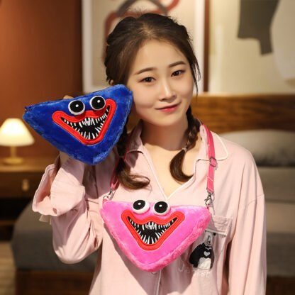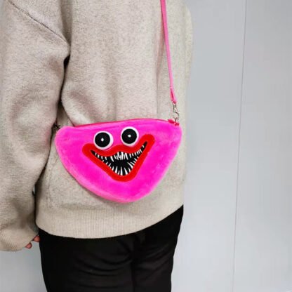 Сумки Хаги Ваги и Киси Мисси в виде головы монстриков легко станут любимым повседневным аксессуаром. Они сделаны из мягкого пушистого материала, очень приятного на ощупь, с вышитой улыбкой и объемными глазами. Сумка довольно вместительная, состоит из одного отделения и закрывается на молнию. Туда легко поместится телефон, ключи и прочие необходимые мелочи. Длинный регулируемый ремешок делает сумки Хаги Ваги и Кисси Мисси удобными и практичными.