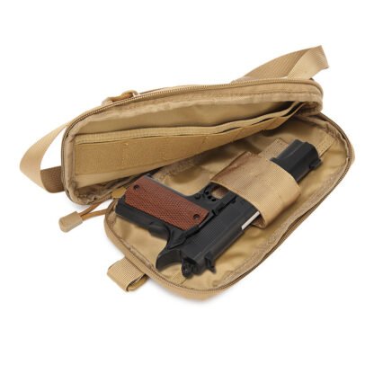 Тактическая сумка через плечо разработана для скрытого ношения Вашего пистолета. Внутри сумки установлена универсальная кобура на липучке (что позволит Вам подстроить аксессуар под большинство моделей пистолетов). Вы сможете оперативно открыть сумку в нужной ситуации и извлечь из нее оружие. Пояс имеет удобную регулировку по объему. Данная сумка совместима практически со всеми видами пистолетов.