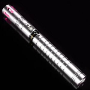 Ручка лазерного меча удобна для хвата ,как одной так и двумя руками, она выполнена из матового алюминиевого сплава. Лезвие сделано из матового пластика, который равномерно рассеивает свет по все длине клинка.