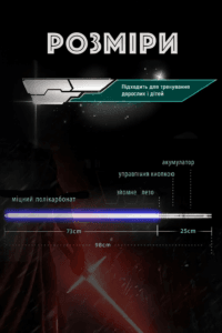 - Длина светящегося лезвия – 73 см, рукоятки – 27 см