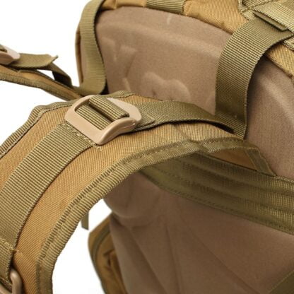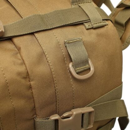 - Система «Molle» по стандартам NATO (25х35 мм) для навеса дополнительного оборудования расположена на фасадной части и по бокам рюкзака.
