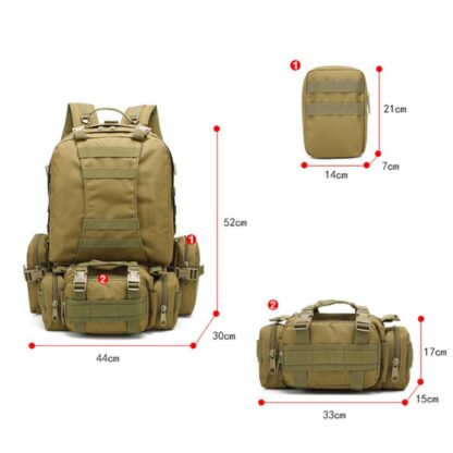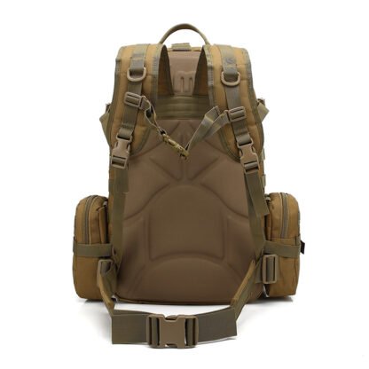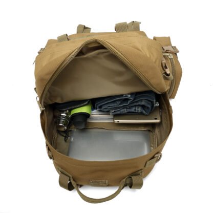 Большой и просторный тактический рюкзак, полностью оборудованный, в нем продуманная система подвеса, в основе которой расположена пластиковая основа в паре с алюминиевой пластиной и регулируемым набедренным поясом (как по объему так и по натяжению) способствует поддержанию правильного положения позвоночника при ходьбе и позволит переносить грузы на большие расстояния. Модель имеет полезный объём в 55 литров, наличие системы Molle для навеса дополнительного оборудования.