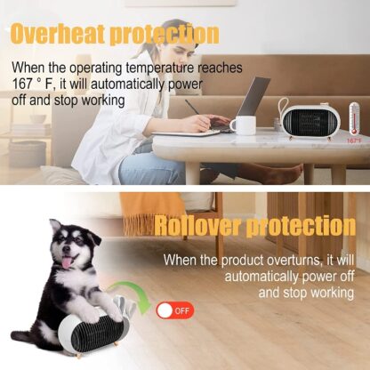 - Устройство имеет функцию защиты от перегрева и отключения питания. Тепловентилятор автоматически отключается, если температура слишком высокая; он также имеет защиту от падений, и перестанет работать сразу после случайного контакта. Кроме того, он также оснащен термостойким и огнестойким корпусом с тройной защитой.