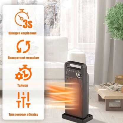 Тепловентилятор Folem на 2000 Вт отличается от обычных обогревателей повышенным комфортом пользования и безопасностью. Для настройки и управления обогревателем можно использовать сенсорную панель или же инфракрасный пульт дистанционного управления. Опции настроек: таймер автоматического отключения, вращение, поддержание стабильной температуры на одном из трех режимов работы. Первый режим, с мощностью до 8 Вт, обеспечивает улучшенную циркуляцию воздуха, без подогрева. Второй режим, с мощностью до 1400 Вт – это постоянный поток теплого воздуха, который медленно и естественно повысит температуру в помещении. Третий режим, с мощностью 2000 Вт – это сильный поток горячего воздуха, который быстро нагреет комнату до комфортной температуры даже в сильный мороз. Цифровой дисплей на верхней части тепловентилятора отражает выбранные настройки и температуру в помещении в режиме реального времени.