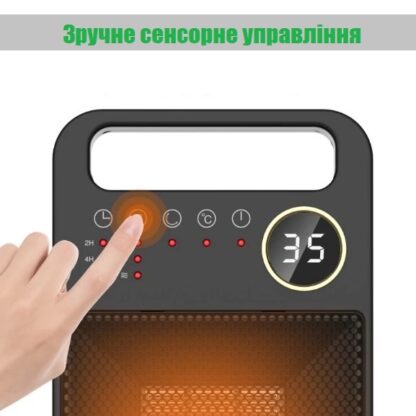 Управление возможно как пультом, так и сенсорной панели на корпусе обогревателя. На дисплей тепловентилятора выводится комнатная температура.