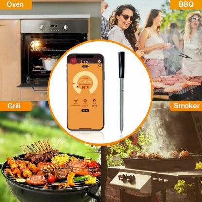 Благодаря своей компактности и большому диапазону измерения температур, его можно использовать для измерения температуры мяса, выпечки, приготовление кремов, а также брать с собой на пикник, чтоб знать про готовность стейков. С помощью беспроводного Bluetooth термометра можно измерять также и температуру жидкостей, например детской смеси, воды для купания малышей.
