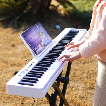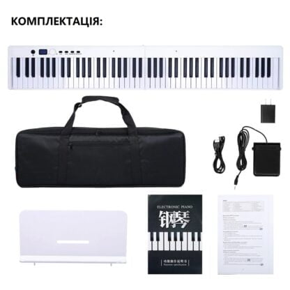 - Удобная конструкция позволяет сложить пианино, уменьшив его размер вдвое, и легко транспортировать