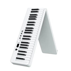 - Удобная конструкция позволяет сложить пианино, уменьшив его размер вдвое, и легко транспортировать