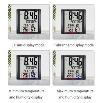 Цифровые настенные часы с термометром, гигрометром и календарем – это полезное универсальное устройство. Оно пригодится тем, кто хочет не только знать точное время и день недели, но и контролировать температуру и влажность воздуха. Это поможет Вам и Вашим близким избежать простуды, приступов астмы и других неприятных проявлений неблагоприятной атмосферы в доме.