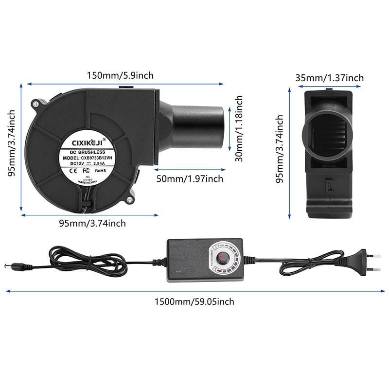 Турбинный вентилятор CX9 изготовлен из высококачественных материалов и отлично подходит для вентиляции с ограниченным зазором. Его можно использовать в автомобиле, для охлаждения серверного шкафа, для печи, барбекю на открытом воздухе и т. д. Благодаря регулятору мощности обдува можно настроить вентилятор на оптимальный уровень шума и воздушного потока для различных применений.