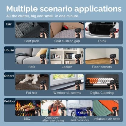 • Подходит для чистки компьютерных клавиатур, ноутбуков, фотоаппаратов, жалюзи, кузова и салона автомобиля, его также можно использовать для надувания матрасов и в других целях.