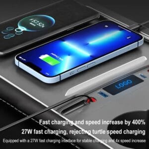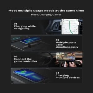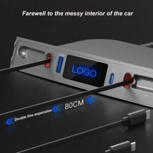 - HUB включает в себя два зарядных кабеля и два USB-порта. Как водители, так и пассажиры смогут быстро и эффективно заряжать свои устройства. Выдвижной кабель: разъем Type-C: QC3.0 18 Вт и iPhone PD: зарядка 27 Вт. USB-A: 5 В 2,4 А, Type-C: зарядка 5 В 3 А. 2.